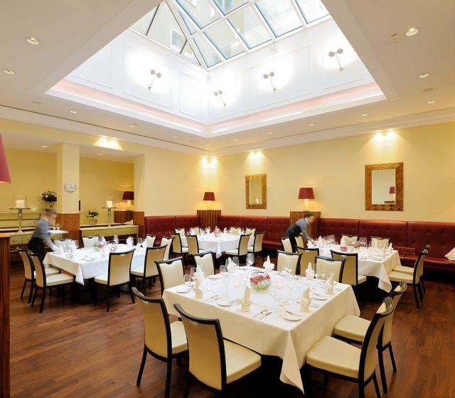 Das Atrium dient als Frühstücksraum für unser Buffet und eignet sich zudem perfekt für einen exklusiven Business-Lunch und individuelle Familienfeiern bis zu 40 Personen. Ausgestattet mit Tageslicht und hochwertigem Parkett, ist dieser Veranstaltungsraum auch klimatisiert.